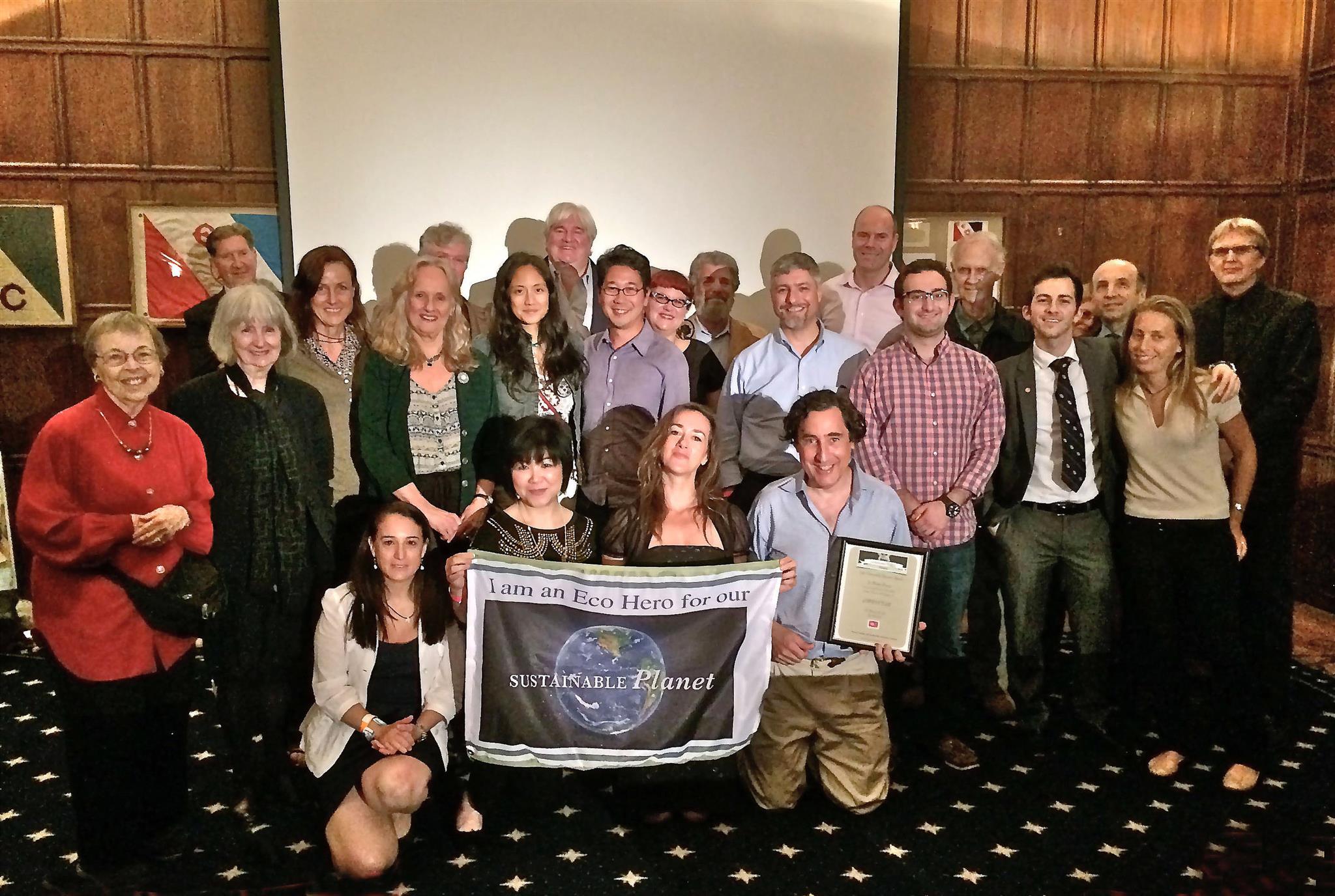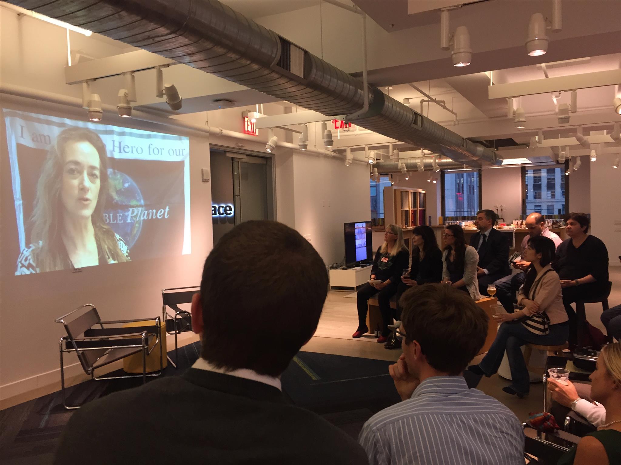 Two interns pose in front of the American Institute of Architects where a special edition of the Sustainable Planet film festival takes place during the 1st edition of SW NYC!